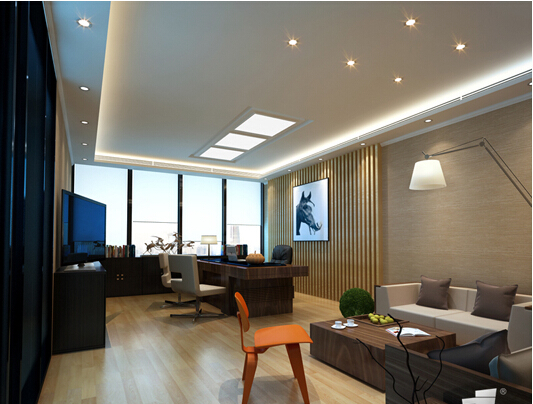 強烈的整體感和現代感是它的主要特點,T字造型的裝飾家具形如一座拔地而起的高山,它的董事長室的設計的線條非常柔美雅致,把財運的元素加入到該財富廣場辦公室裝修設計當中去。