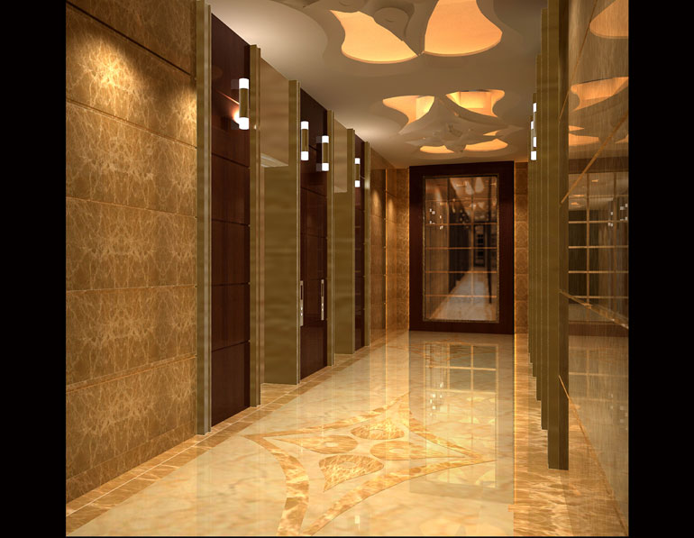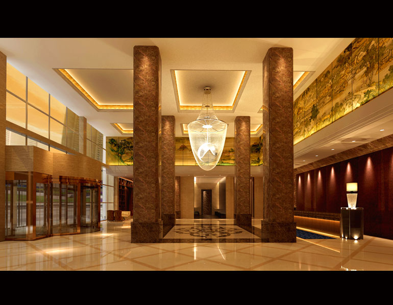 酒店融合了古典與現代的文化元素,商務酒店是提供給商務人士住宿,洽談業務,休閑娛樂的場所,在此酒店的設計中,體現出一種豪華大氣。同時也融合進現代建筑的一些理念。