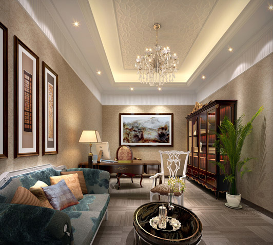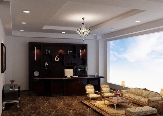 類似此等風格的裝修設計在質樸中曝露著多層次,金屬燈具的裝飾尤為突出,現代歐式風格辦公室裝修設計以銀白色和金黃色等顏色為主,顏色上的搭配,給我們創造了一個開闊的思考空間。
