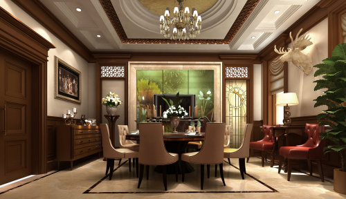 工程說明:別墅設(shè)計不僅僅考慮的是別墅居住者的生活習慣及各種風格的搭調(diào),同時還要考慮別墅設(shè)計的外在元素。地面大理石拼鋪,深色木質(zhì)扶手的家具,挑空的層高,歐式的壁爐和歐式木質(zhì)造型,整個客廳空間就營造出一種沉穩(wěn)大氣的氛圍。帶著美式風格的粗獷大氣和韻味,